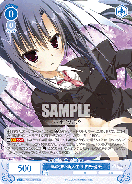 「気の強い新入生 川内野優美」(´・ω・`)0/0/500ドラ付き(´・ω・`)ドラ捲れるたび1500パンプ(´・ω・`)ストブ連動で1面にツインドライブを付与。後列から···