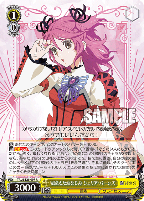 「見違えた幼なじみ シェリア・バーンズ」(´・ω・`)1/0/3000行き4000ドラ無し(´・ω・`)筒連動で3落下までX回収1000パンプ(´・ω・`)ドラ無しかよ!(´・ω・`···